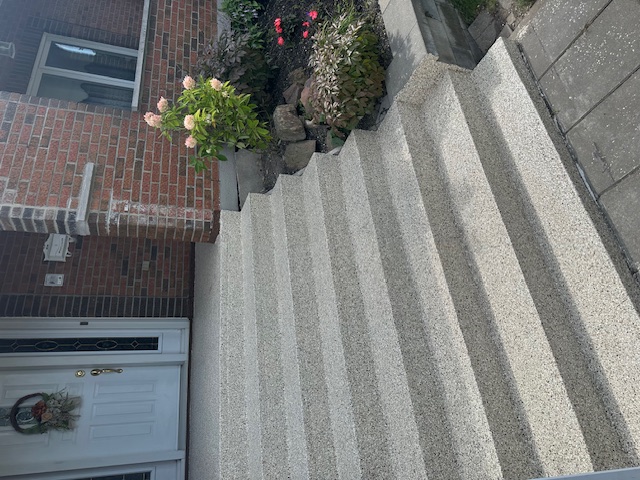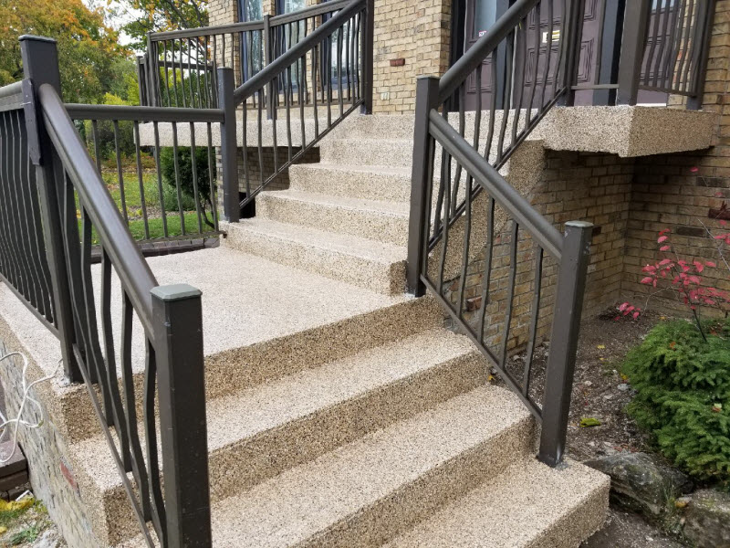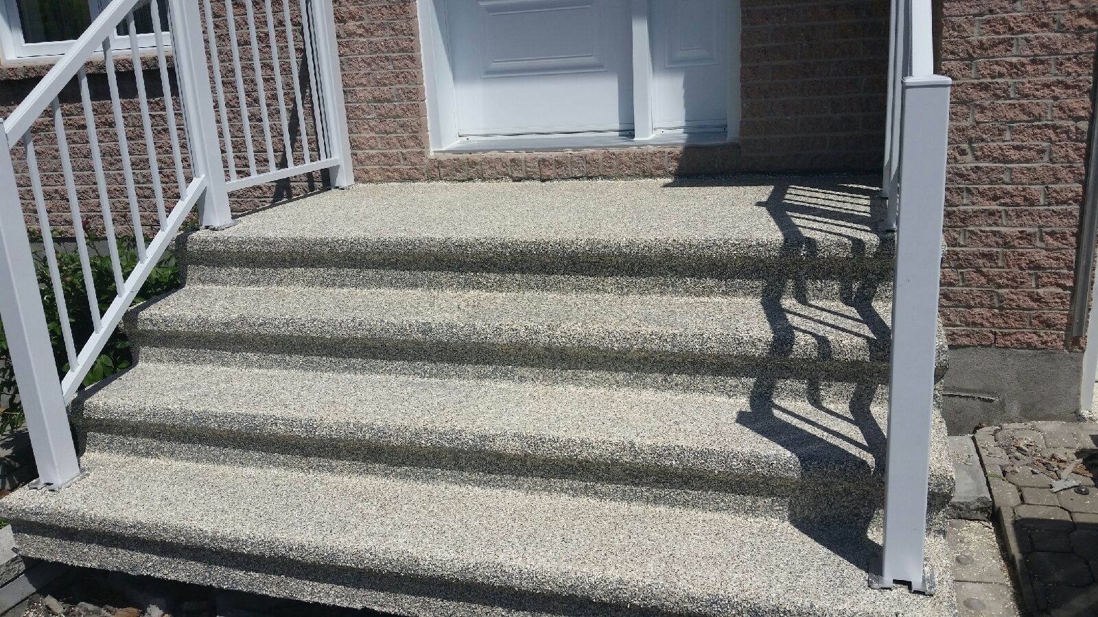Le revêtement époxy ou ployaspartique est également conçu pour l’ extérieur : balcon et marche, escalier, patio, porche, terrasse, allée ou tout autre espace en béton.